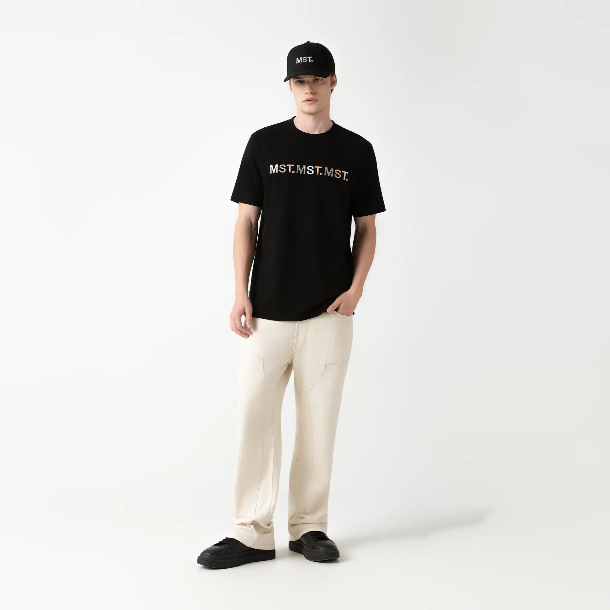 Bowen es una T-shirt masculina confeccionada en 100% algodón ultra siliconado de alta calidad, tratado para ofrecer una superficie suave y un acabado impecable. En el frente, el logo MST se repite de forma lineal mediante bordado plano de alta precisión, combinando tres colores que aportan contraste y definición. En la parte posterior, los logos tradicionales de la marca se aplican en estampado plano, garantizando colores sólidos, excelente adherencia y estabilidad dimensional. Una pieza que destaca por su detalle técnico y su estética equilibrada.
