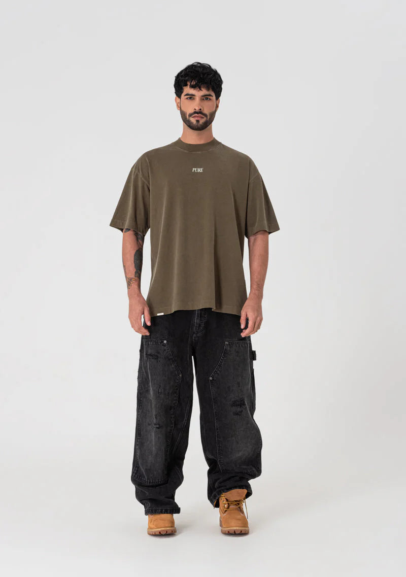 Camiseta color café. Fit oversized. Tela: 100% algodón. Alto gramaje (200 gr). Textos en alta densidad.