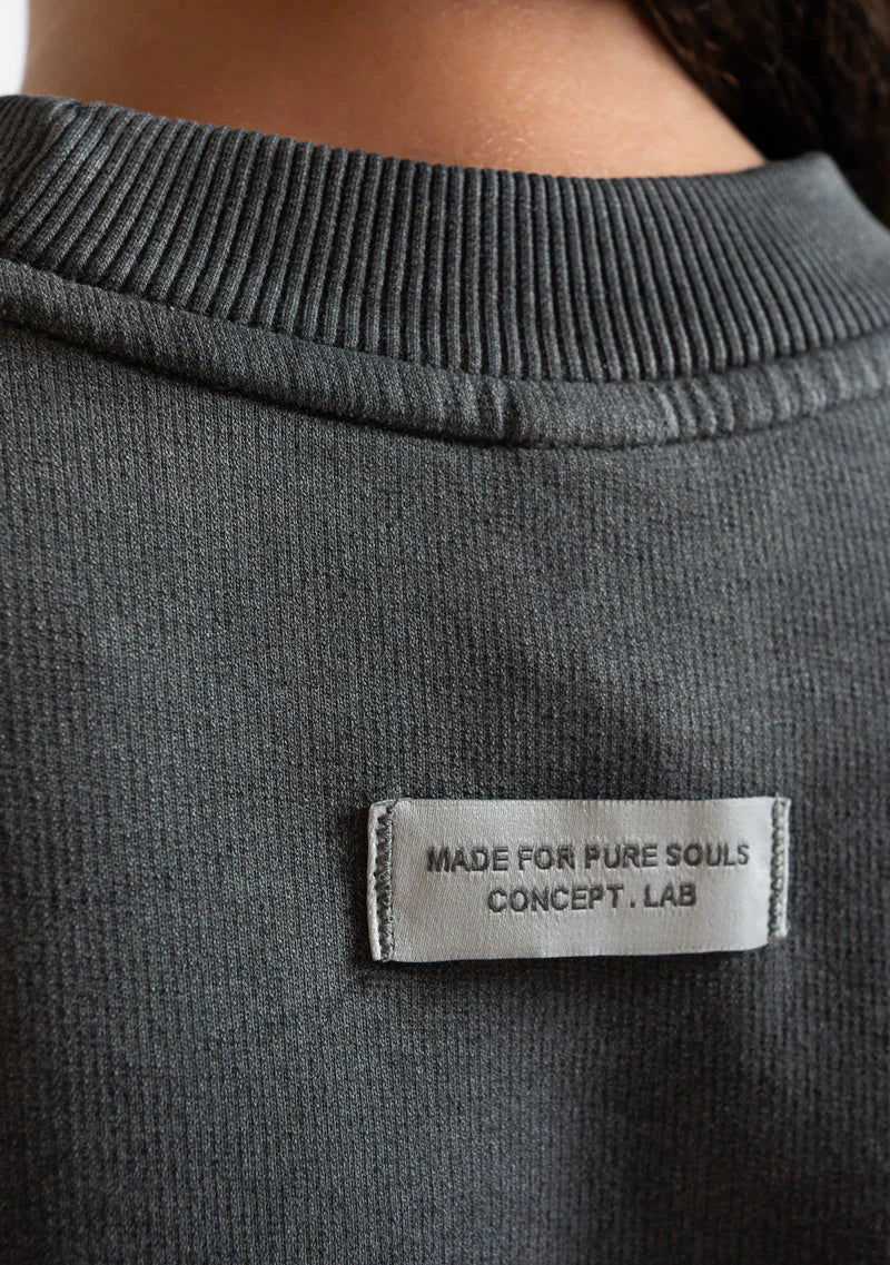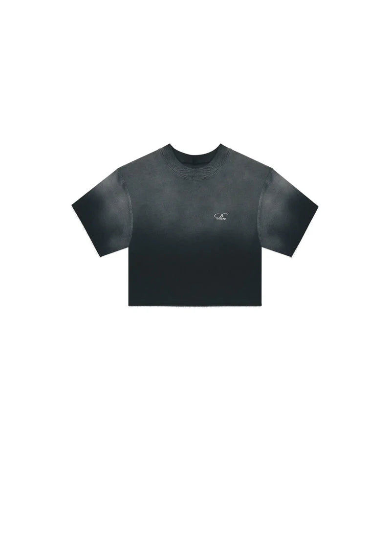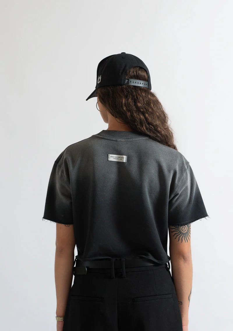 Crop Top color negro lavado. Fit oversized. Tela: 100% algodón. Logo estampado en alta densidad en punto corazón y marquilla tejida en la espalda.